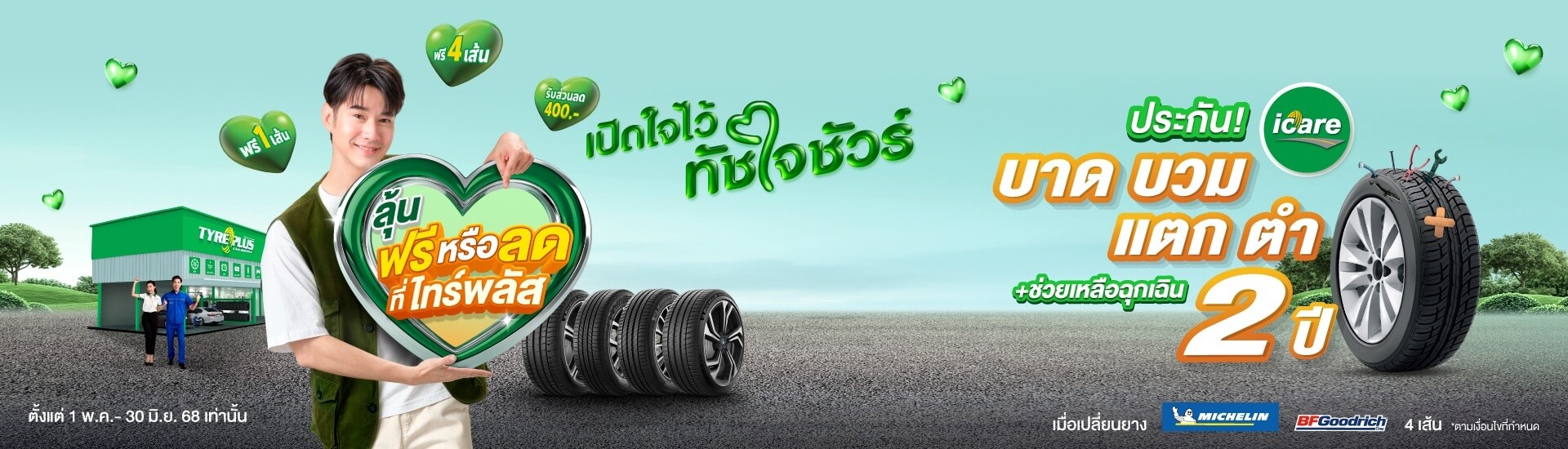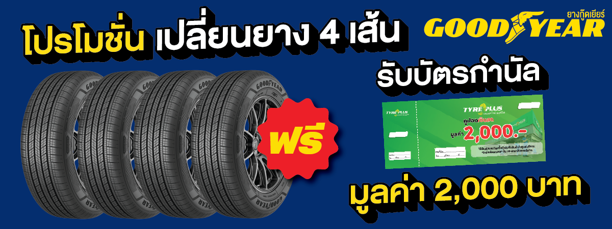 พิเศษสุดๆ ซื้อยางรถยนต์คุณภาพเยี่ยมระดับโลก GoodYear วันนี้มาพร้อมกับโปรโมชั่นยางรถยนต์สุดพิเศษ พร้อมรับบัตรกำนัลแทนเงินสด มูลค่า 2,000 บาท ยางรถยนต์คุณภาพเยี่ยมระดับโลก เพื่อความปลอดภัยและมั่นใจในการขับขี่ ซื้อวันนี้ ฟรี รับประกันยางชั้น 1 ดูแลแบบจัดเต็ม !!!!!