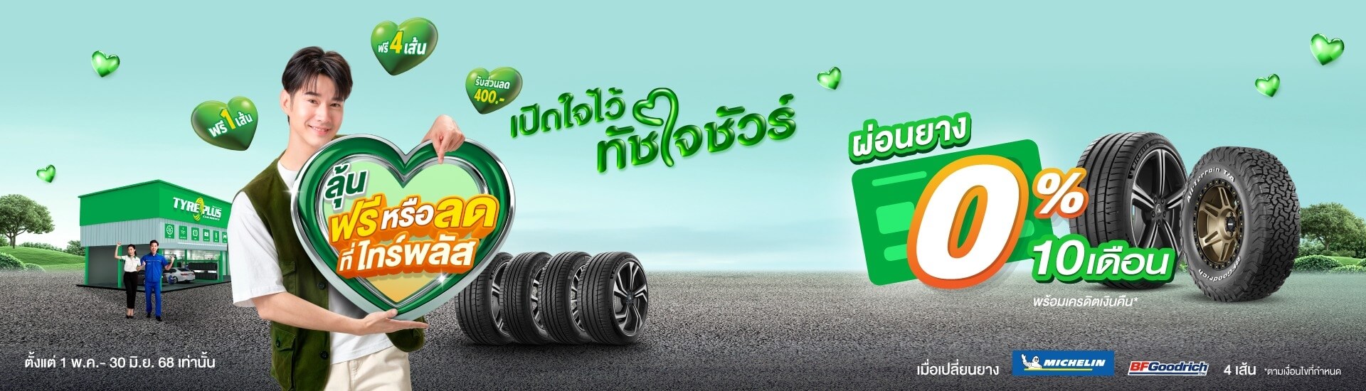 เพียงมาเปลี่ยนยาง #MICHELIN ครบ 4 เส้น *รับส่วนลดสูงสุด 1,000 บาท พร้อมผ่อน0% นานสูงสุด 10 เดือน